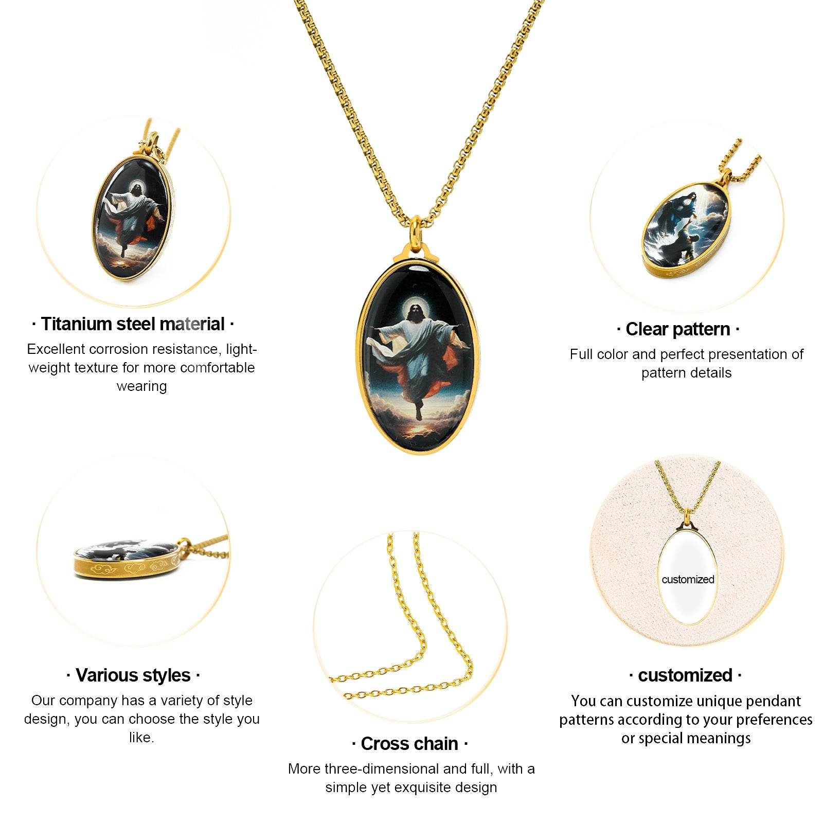 Crafted from premium stainless steel, this elliptical pendant features a distinctive moire cloud pattern that adds depth and elegance. Expertly designed for durability and style, it offers the option for pattern customization, allowing you to personalize the piece to your preference. Ideal for those seeking a unique accessory that combines modern craftsmanship with subtle artistic detail.
